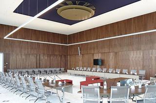 Le Dienstencentrum De Leiespiegel à Deinze est un immeuble de bureaux moderne avec beaucoup de verre et de béton. D'où l'attention que l'architecte Thijs Verfaillie de Bureau Bouwtechniek a accordée à la limitation du temps de réverbération dans les différentes pièces. A cet effet, on a utilisé des panneaux perforés de Print Acoustics, qui ont également servi de finition pour les murs intérieurs. Ceux-ci ont été produits et installés par Van Den Rijse d'Erpe-Mere. Le chef de projet Gert Goossens: “La menuiserie intérieure est particulièrement polyvalente. Ainsi, les perforations acoustiques deans le revêtement font aussi office, à certains endroits, de bouches de ventilation. Tout est parfaitement étudié et construit avec des matériaux de haute qualité. Un bel exemple de la manière à laquelle un concepteur peut augmenter la valeur d'un bâtiment."