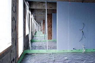 L'ancien siège d'AB InBev à Louvain a été entièrement dénudé et entièrement réaménagé en résidence d'étudiants. Au total, il abrite 255 chambres qui devaient toutes répondre aux exigences d'un confort acoustique accru. En concertation avec VK Engineering, le projet manager MasKo a prévu une construction murale masse-ressort-masse entre les différentes chambres. Cette construction se composait chaque fois d'une construction à clous métalliques, de plaques de placoplâtre Diamond Board One de Knauf et d'un creux assez large, rempli de laine minérale. Thomas Van Sanden (MasKo): “De cette manière, nous avons quand même pu atteindre un confort acoustique élevé via une construction légère et donc facile à intégrer. Une attention spéciale a été accordé à une installation correcte des boîtiers de prise et des interrupteursakelaars."