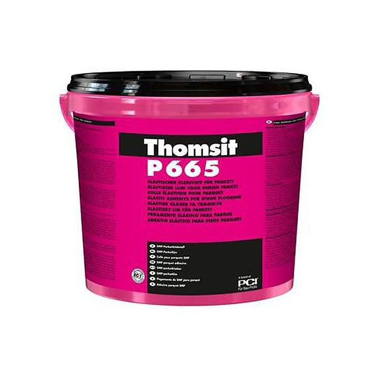 Deze nieuwe elastische lijm voor parket heeft een permanent sterke hechtkracht, is watervrij en is geschikt voor meerlaags parket en massief strokenparket tot 1.200 mm lengte. Het is een uiterst emissie-arme, speciale 1-componenten elastische lijm met de voordelen die daarbij horen in o.a. verwerking. De elastische verlijming bouwt schuifkrachten af en vermindert hierdoor blijvend de invloed van trekspanningen op de ondergrond. Thomsit P 665 is ook geschikt voor gebruik op verwarmde vloerconstructies. Doordat het product watervrij is, betekent dit dat het parket niet kan uitzetten.
