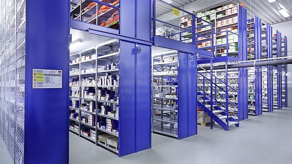 Rekken met platformvloer en trap voor magazijninrichting