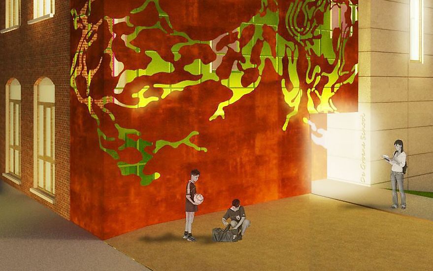 De Groene School krijgt gevelgroot kunstwerk van Nick Ervinck
