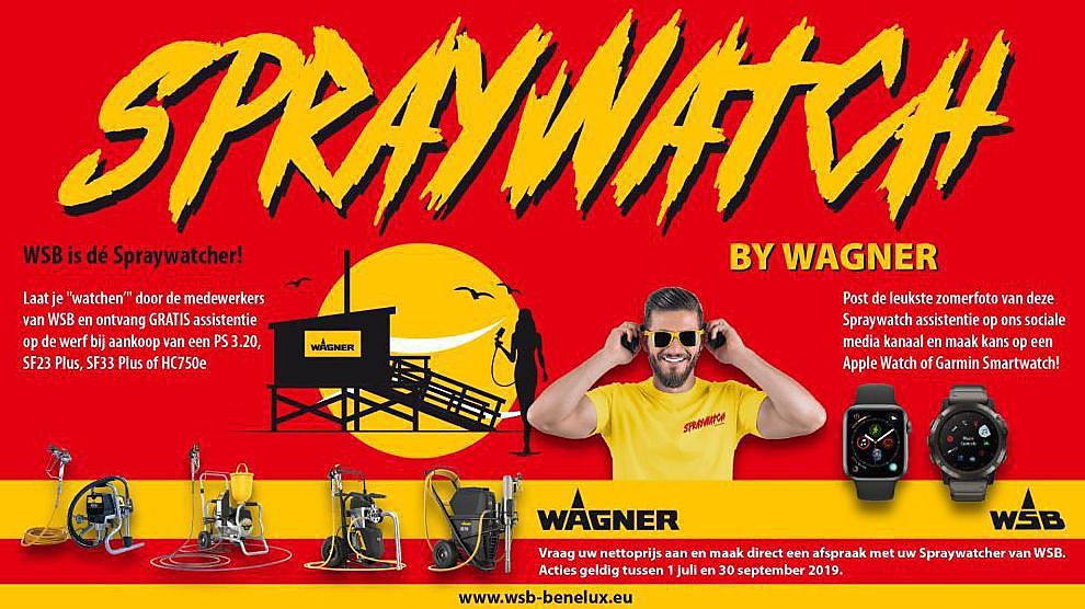 De serie BayWatch is weer op TV en ook de film is in een moderner jasje gestoken. Wagner speelt hierop in met een ludieke campagne: de Wagner SprayWatch! WSB Finishing Equipment is met haar Wagner specialisten de SprayWatcher in de maanden juli, augustus en september 2019. Samen met de dealerrelaties van WSB wordt de eindklant bezocht die een Wagner ProSpray 3.20 Special, een SuperFinish 23 Plus, een SuperFinish 33 Plus en/of een HeavyCoat 750E heeft aangekocht. Deze klanten ontvangen gratis assistentie van de Wagner specialist(en), de pomp wordt samen met de klant opgestart, bij de eerste meters wordt geholpen en het belang van reinigen wordt getoond. Wat het zo ludiek maakt? De Wagner specialist komt tijdens het ‘Watch’-moment langs bij de klant, met een tas vol ludieke goodies, gericht op het Bay-Spray Watch thema! Als de klant een foto post van zijn / haar klus, gecombineerd met enkele van deze goodies, maakt die kans op een leuke Watch-Gadget. Wie de leukste zomerfoto van de Bay/Spray-Watch Assistentie post en #WSB_Finishing_Equipment tagt op Instagram of WSB Finishing Equipment op LinkedIN/Facebook maakt kans op een Apple I Watch.