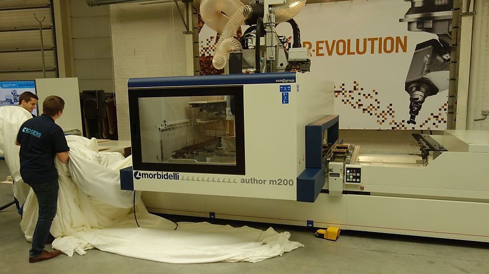Tijdens een speciale opendeurdag op woensdag 5 en donderdag 6 april stelde Rogiers in Waregem de nieuwe SCM Morbidelli Author M100/200 voor aan klanten, vakpers en andere geïnteresseerden. Met dit (r)evolutionair machineconcept tilt SCM de compacte, betaalbare CNC-bovenfreesmachine met open brugstructuur naar een hoger niveau. Elk onderdeel van de machine werd tot in detail bekeken en opnieuw ontwikkeld. Opvallend is dat alle voorzieningen perfect in de machineconstructie geïntegreerd zitten: geen losse leidingen, geen aparte compressor, enz. Dit leidt ertoe dat de machine rondom rond 360° toegankelijk wordt, waardoor u opnieuw wat extra plaats wint in het atelier! Daarbovenop is de machinetafel maximaal benutbaar en bereikbaar doordat de machinebrug volledig kan wegschuiven. De machine is beschikbaar in twee modellen: M100 (met een nuttig bereik van 180 mm in Z) voor interieurtoepassingen, en M200 (met nuttig bereik van 250 mm in Z) voor algemeen schrijnwerk. De Author M100/200 kan uitgerust worden met vier aparte bewerkingsunits: een horizontale boorunit, een performante verticale boorgroep (met RO-AX technologie, 60% sneller dan voorgangers!), een drie-assige of vijfassige spindel en nog een extra unit (bv. voor een zaagblad). Tot slot is er keuze tussen een manueel om te stellen tafel, of een automatische tafel met een grote flexibiliteit. Wie meer wil weten kan terecht in de showroom van Rogiers in Waregem. De machine zal ook de highlight zijn op de stand van SCM op de Ligna-beurs in Hannover.