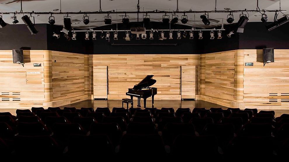 Wie het Performance Theatre van de Freshwater Senior Campus in Australië binnenwandelt, ziet meteen dat de horizontale houten structuur die zich rond het podium plooit niet het werk is van een traditioneel akoestisch bureau. Het ontwerp, opgebouwd uit drie kubieke meter Amerikaans tulpenhout, is een creatie van meubelontwerper Ben Percy en brengt dankzij de kleur- en toonvariaties in het hout de nodige speling in de achtergrond. Maar ook de duurzaamheid van het hout was voor Percy een doorslaggevende factor: “Ik vind het belangrijk om ontwerpen te creëren die meer dan één generatie kunnen meegaan.”