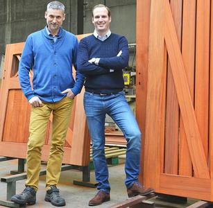 Timothy Peelaers: “Padoek is een zeer duurzame en stabiele houtsoort, en is zo perfect voor buitenschrijnwerk. Als het vers verwerkt is, kun je het onmiddellijk herkennen aan de koraalrode kleur. Eens geplaatst, zal het snel en mooi vergrijzen. We hebben al andere houtsoorten overwogen, maar padoek bleek na testen de beste keuze. De poort moet niet enkel mooi zijn als je ze levert, ze moet ook haar tijd meegaan. Het is tenslotte geen goedkope investering voor de particulier, en ook een vakman wil later geen klachten van zijn klant. Die vakman kan zijn poort overigens zonder merkembleem bij Collstrop bestellen, zodat ze zelf hun eigen logo kunnen aanbrengen. Wat we hun bieden, is dus heel duidelijk: een maatwerkoplossing voor hun project tegen een transparante marge. De aannemer hoeft enkel nog te plaatsen. En dat blijft voor hem nog altijd de meest rendabele activiteit.“